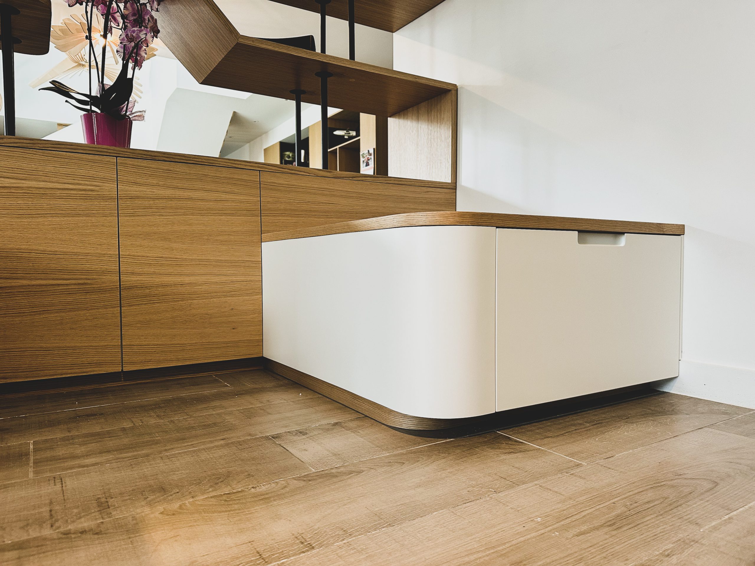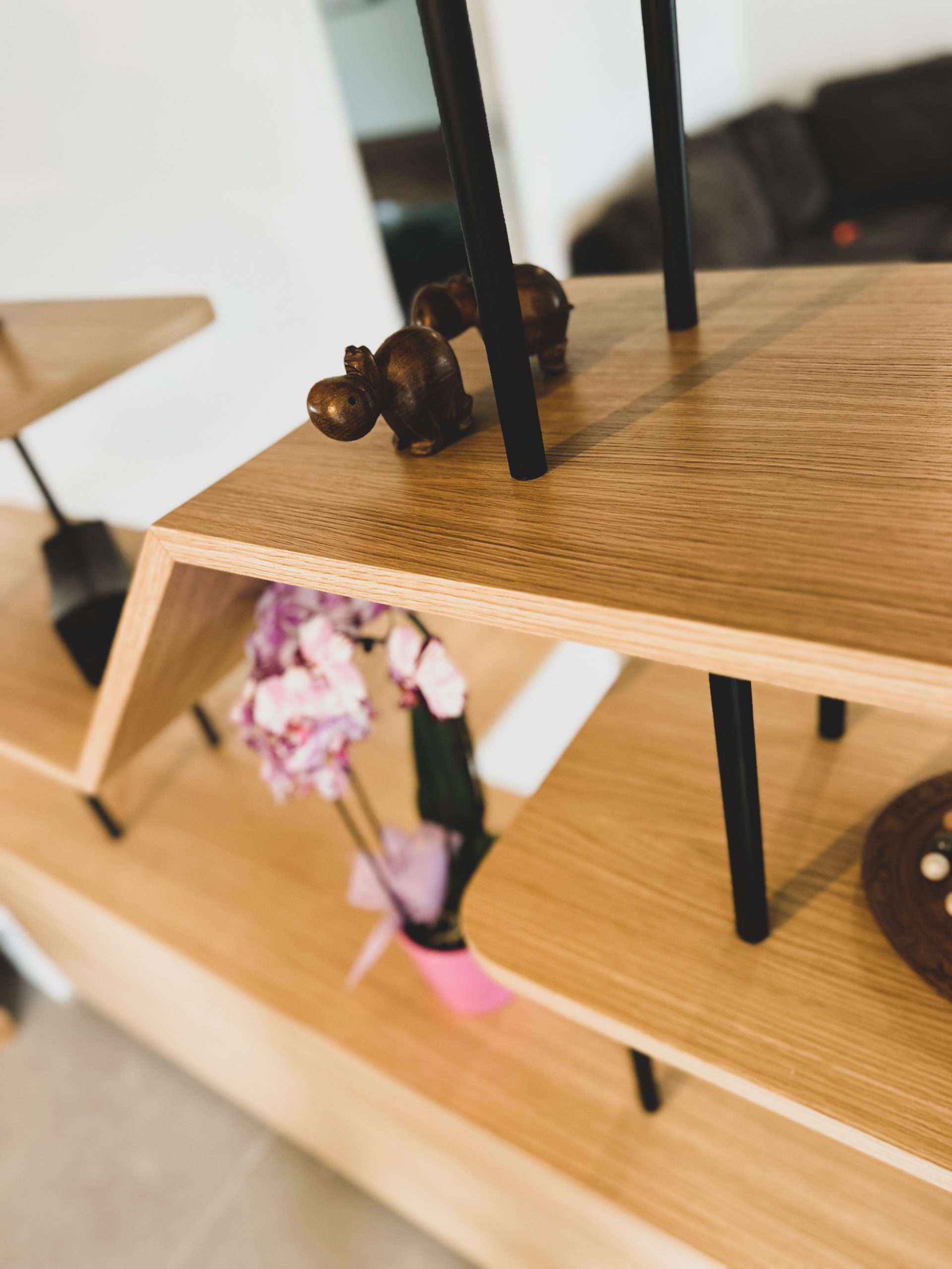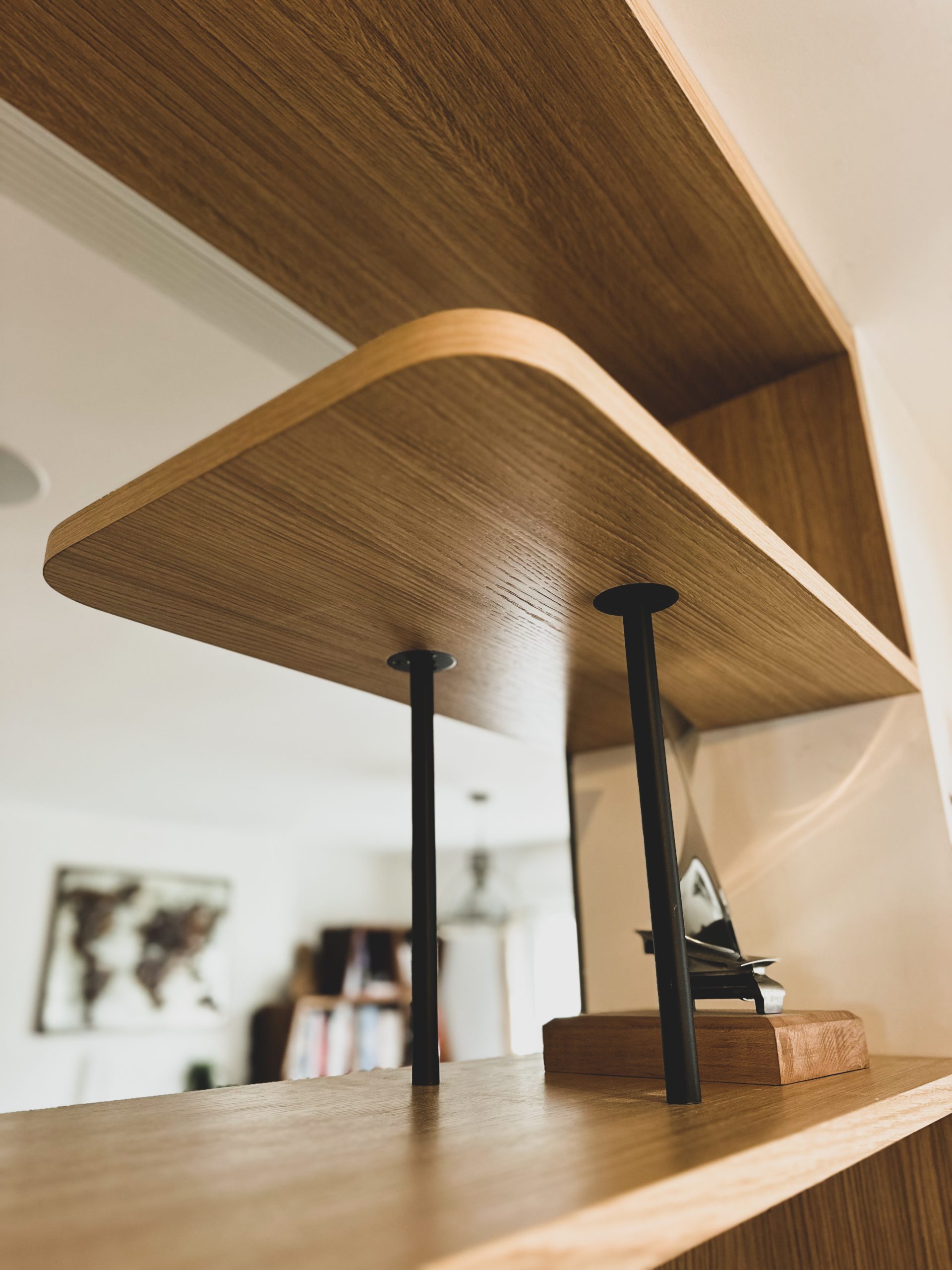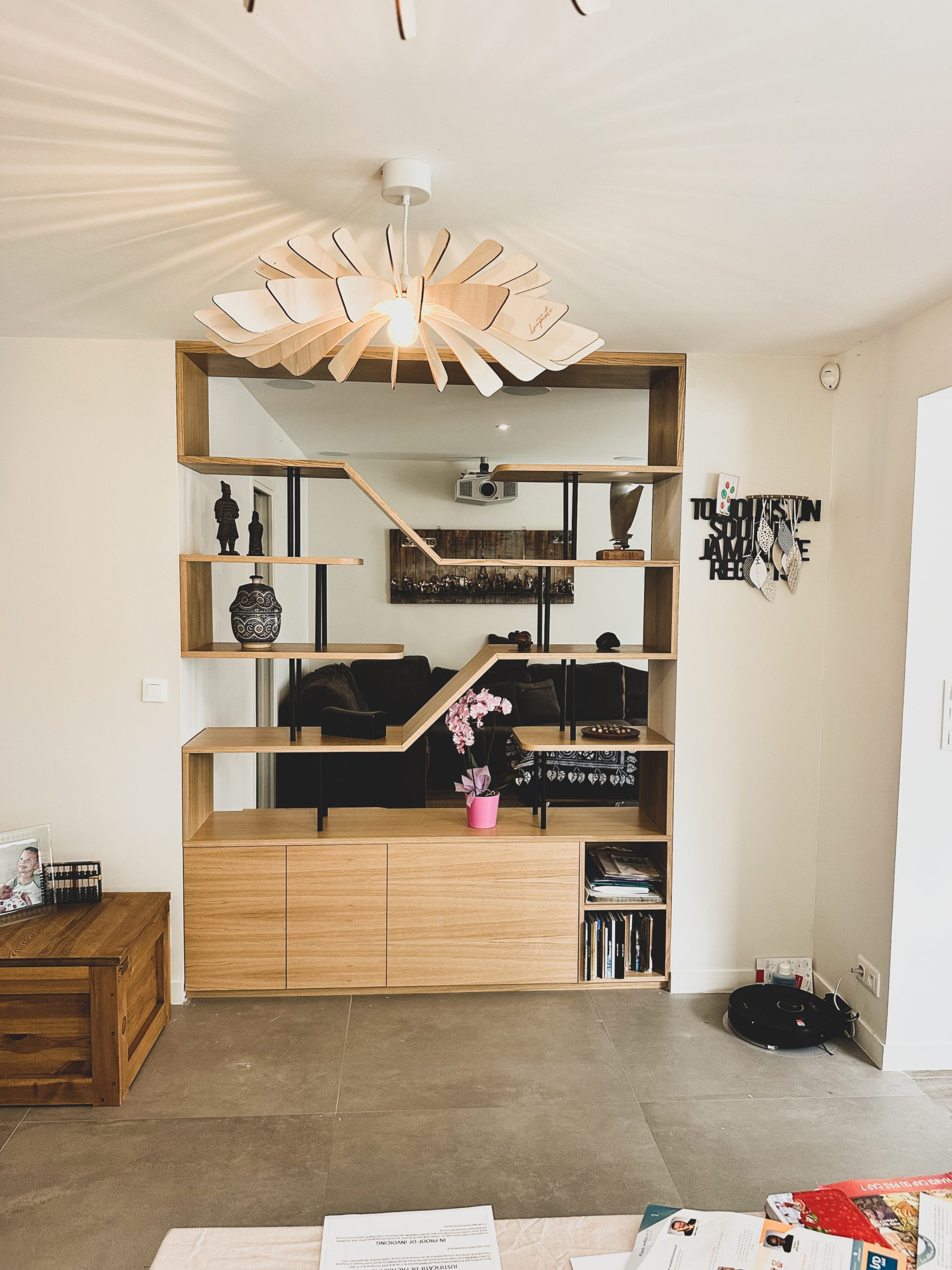 Création d'une bibliothèque traversante design et aérienne qui s'intégre à un espace sans marquer sa présence.