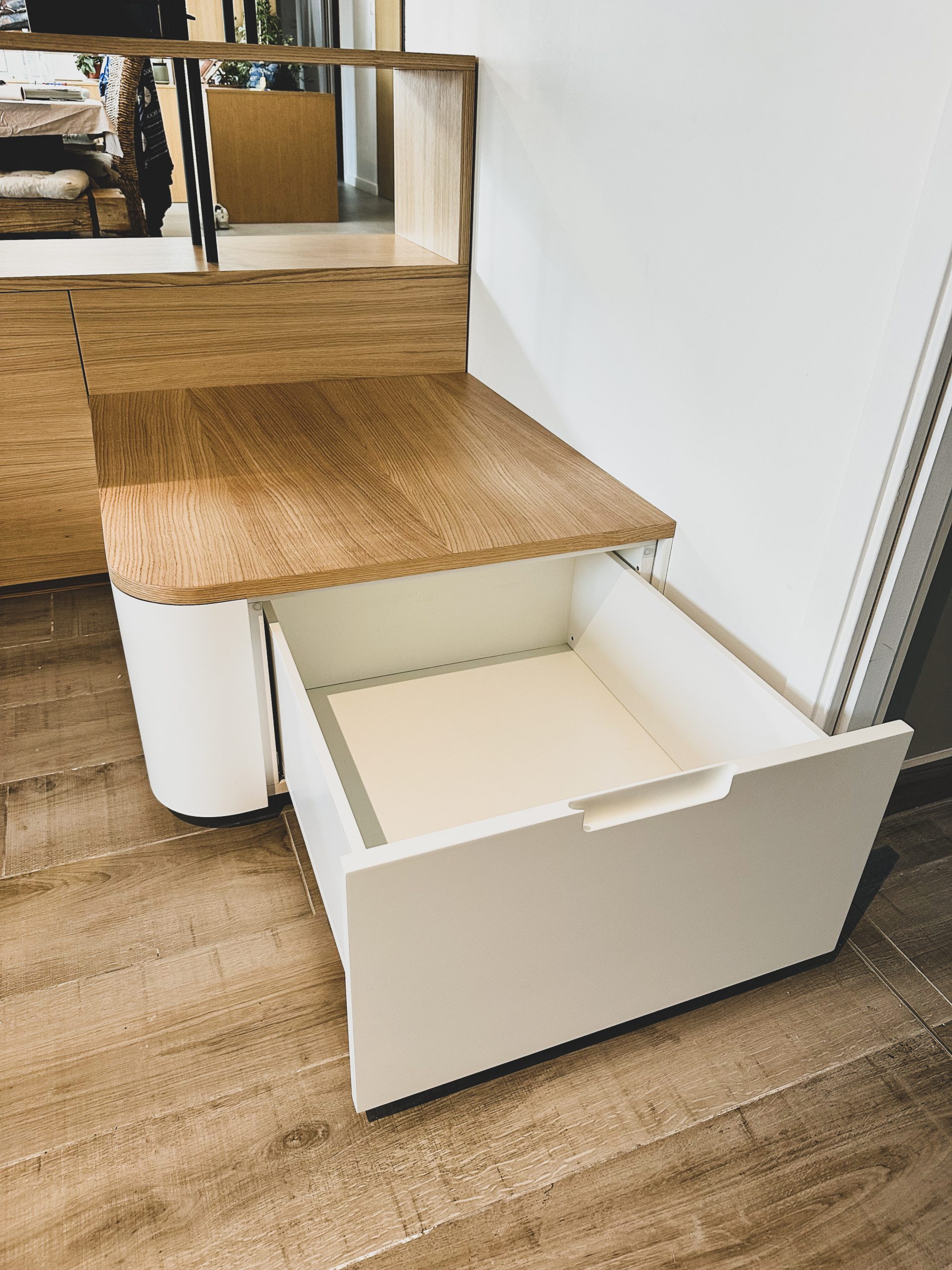 Ensemble meuble TV, bibliothèque et rangement avec escalier