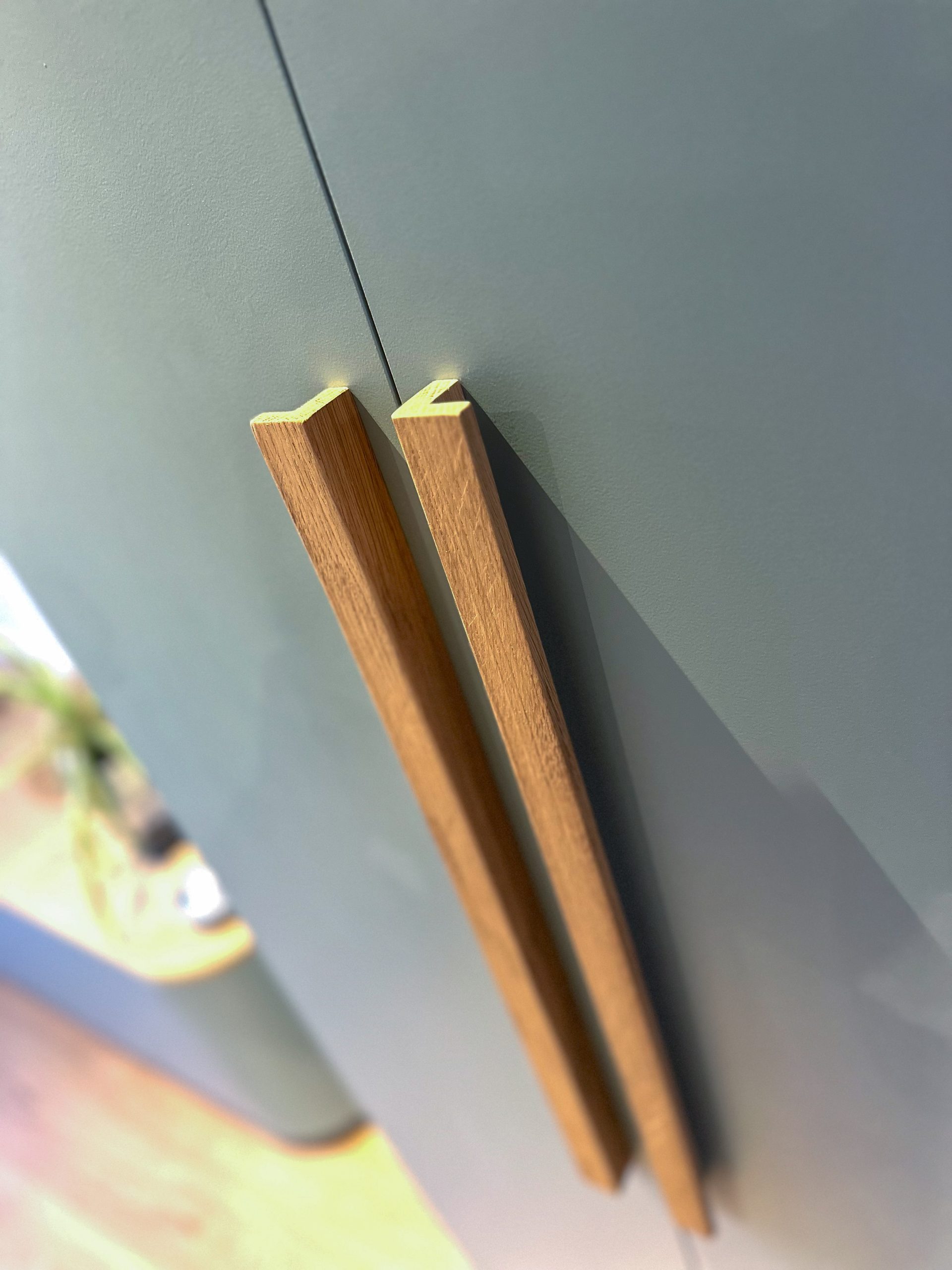 Medium peint et laqué, plaqué chêne et chêne massif.